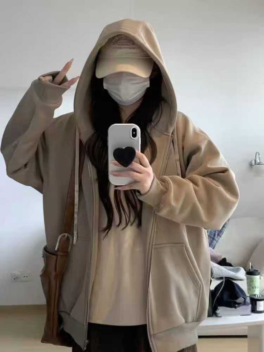 仿华棉加绒开衫拉链卫衣男女同款外套秋冬款加绒加厚春秋宽松重磅休闲外套22...