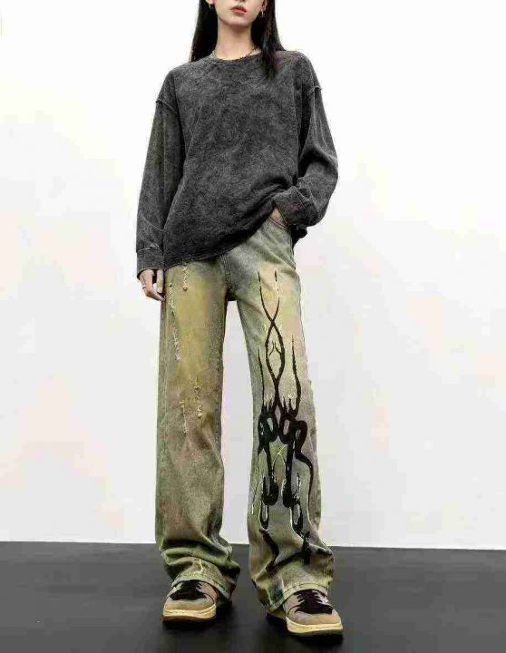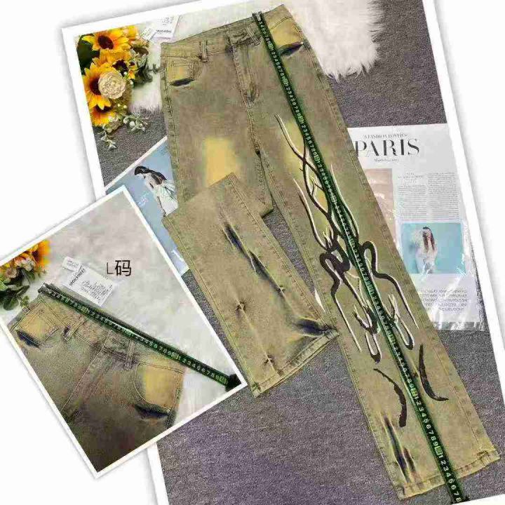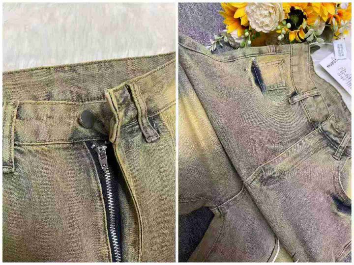 秋季新品高弹力洗水棉男女同款复古黄泥色牛仔裤,独立...