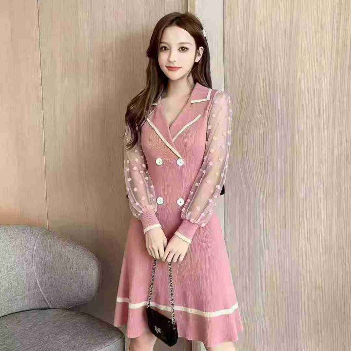 秋冬新款轻奢高级感气质小香风针织毛衣西装连衣裙,独...