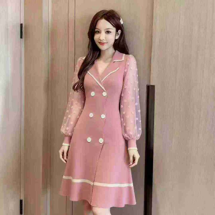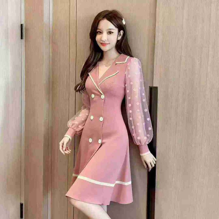 秋冬新款轻奢高级感气质小香风针织毛衣西装连衣裙,独...