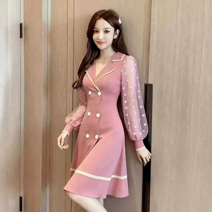 秋冬新款轻奢高级感气质小香风针织毛衣西装连衣裙,独...