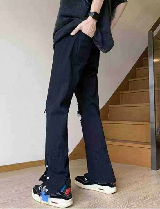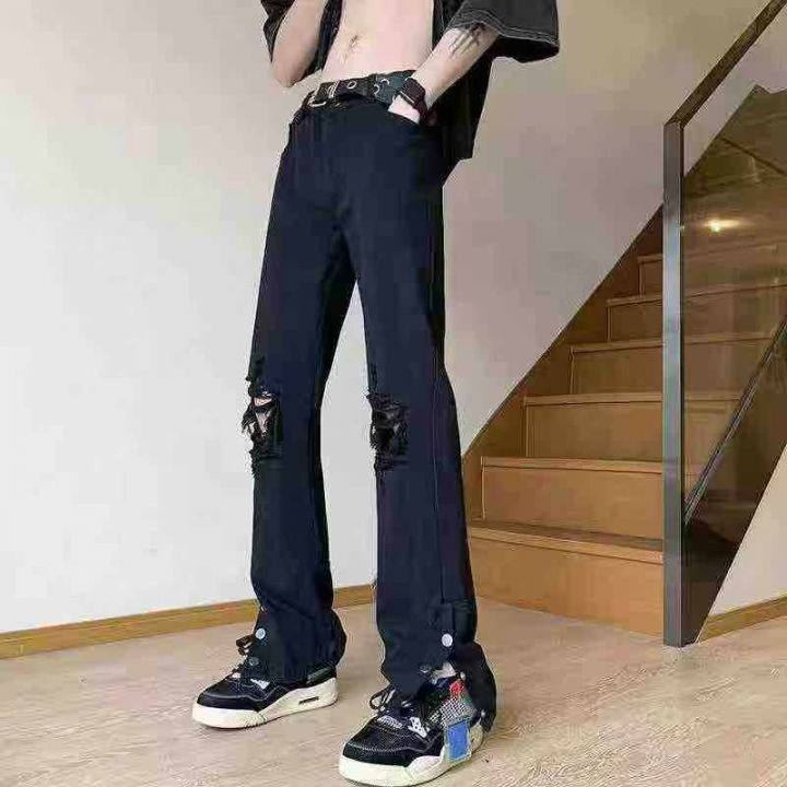 秋季新款洗水棉设计款网红破洞牛仔裤,独立包装带腰卡...