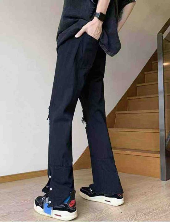 秋季新款洗水棉设计款网红破洞牛仔裤,独立包装带腰卡...