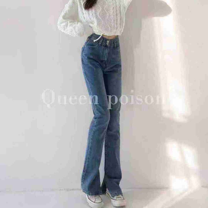 复古欧美风显高开叉直筒微弹牛仔裤,单款单色,独立包...