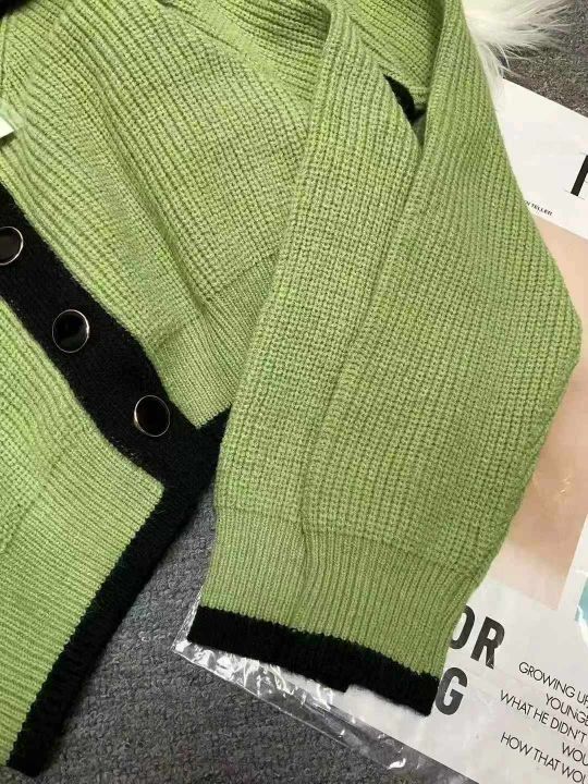 品牌原单宽松慵懒风短款小香风设计感撞色拼接粗针毛衣开衫,独立包装带吊牌,均码面料软糯厚实,365件,全清7.9元超低价秒杀!分货加一!