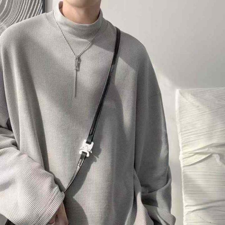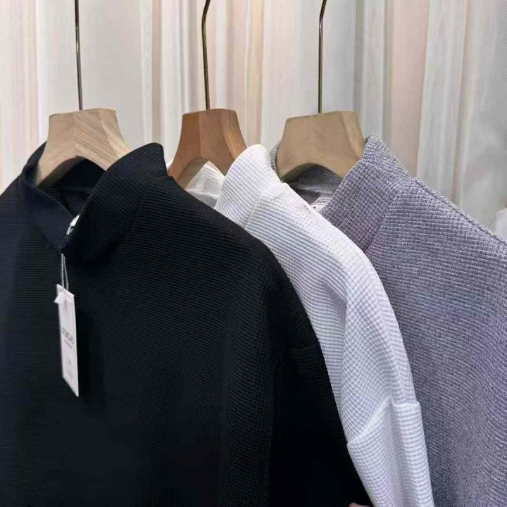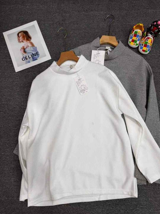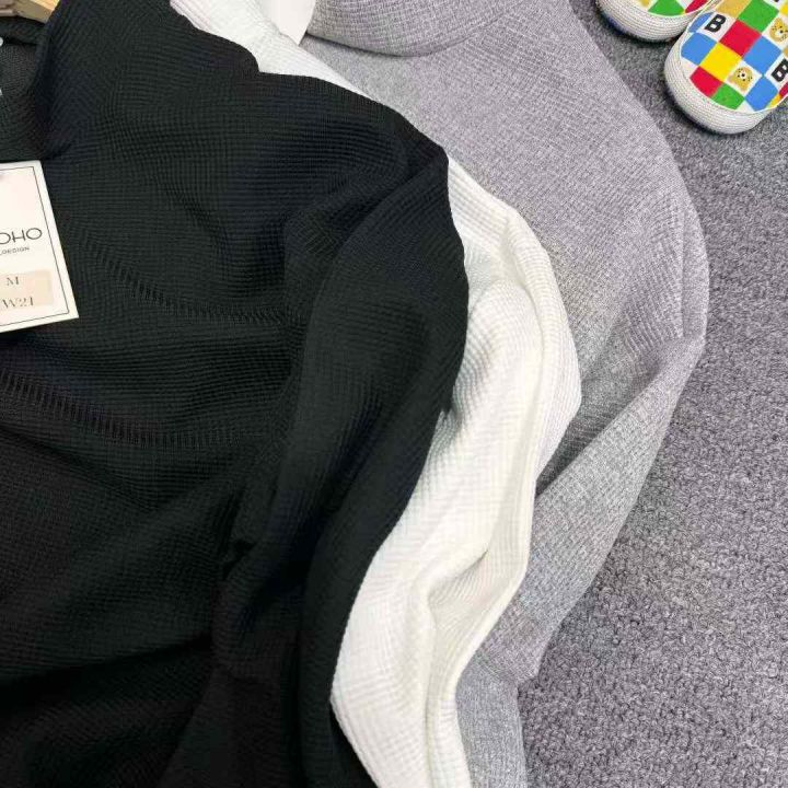 1075件,华夫格春秋长袖T恤男女潮牌纯色半高领打底衫美式卫衣,独立包装,码数:M-3XL,全清5.8元,分货+1