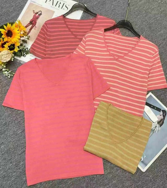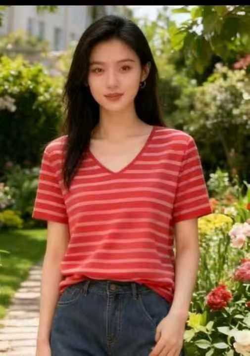 夏季新款撞色条纹V领冰丝针织短袖,独立包装,均码面料软糯舒适弹力大,186件,全清4.9元超低价秒杀!