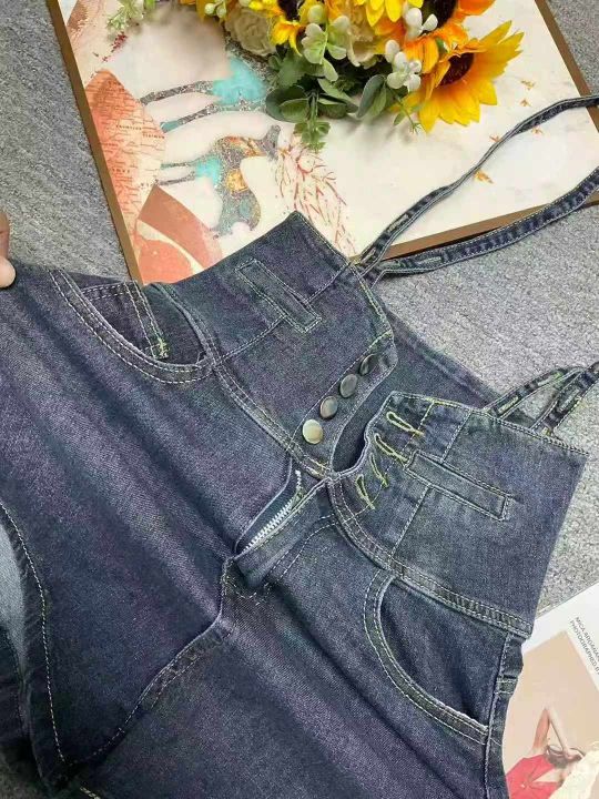 夏季新款靓妹女装弹力修身显瘦牛仔背带短裤,独立包装...