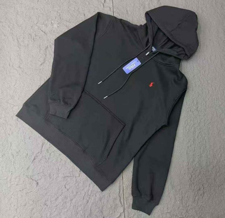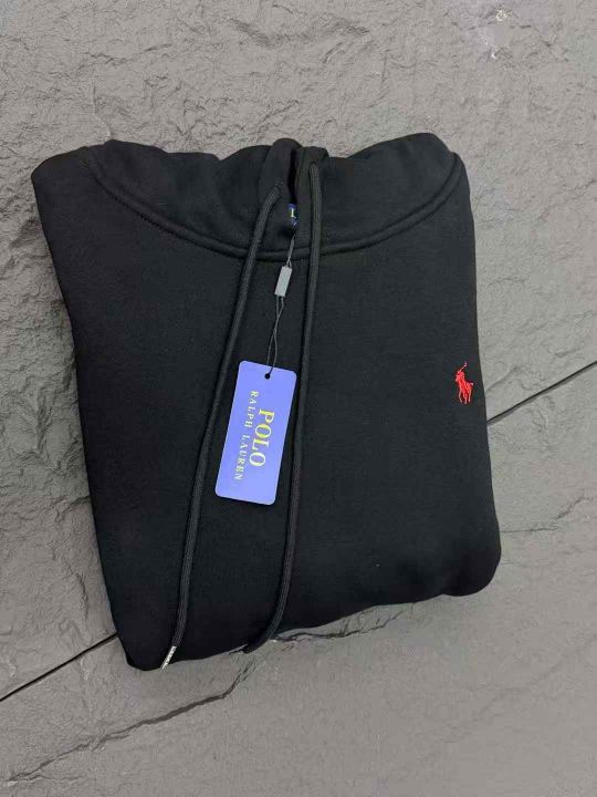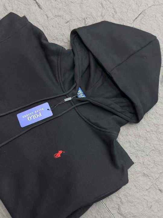 Polo Ralph Lauren拉夫劳伦2025经典加绒男款连帽水貂银狐绒套头纯色卫衣刺绣logo 黑色 400件 配清 100起配!
