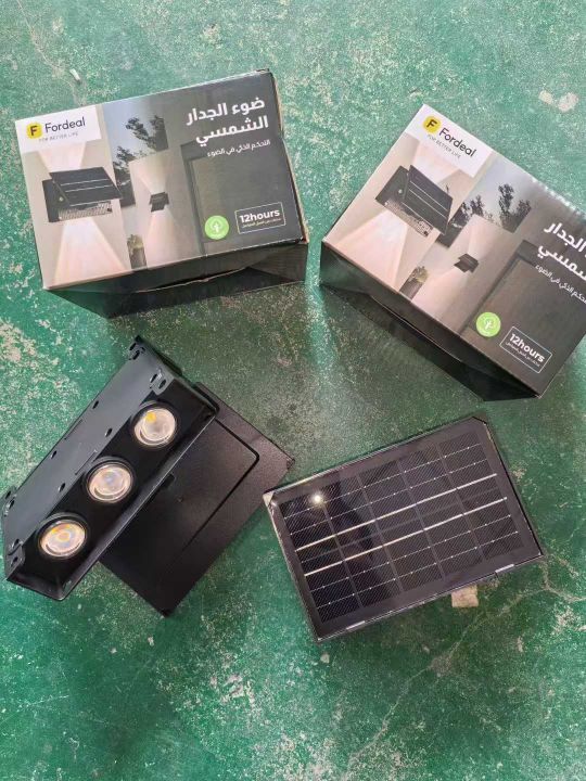 户外太阳能壁灯 现货6000套6头上下发光/ 光伏板角...