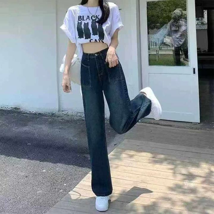 秋季新品高品质网红复古蓝洗水棉爆款牛仔直筒阔腿裤,独立包装带吊牌,码数...