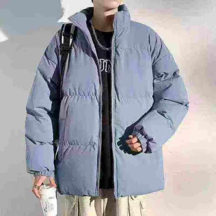 男女同款冬季加厚保暖面包服潮牌立领棉衣纯色宽松外套