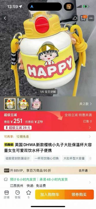 樱桃小丸子316不锈钢网红吨吨保温杯,5000pcs,特价处...