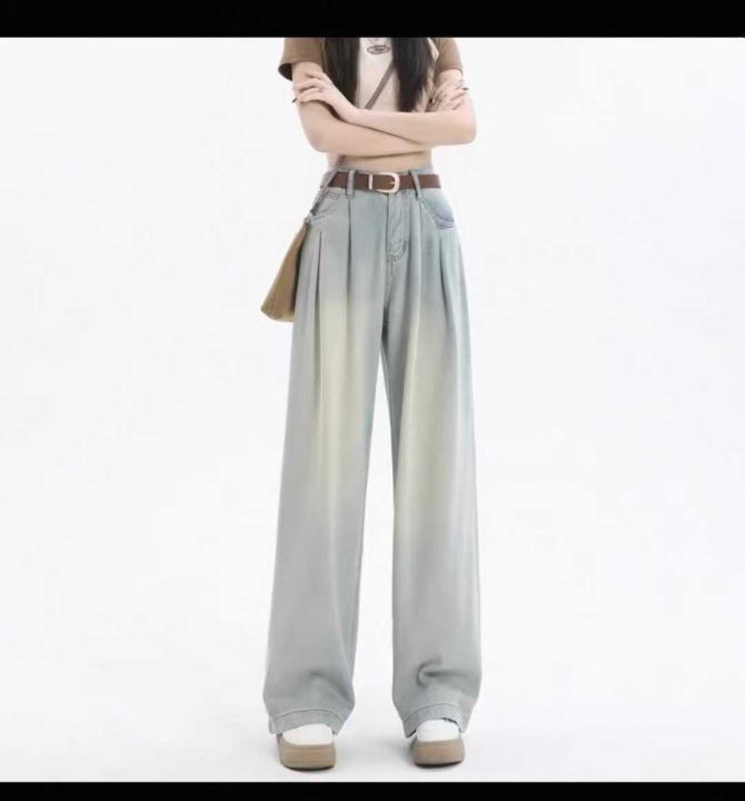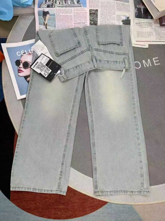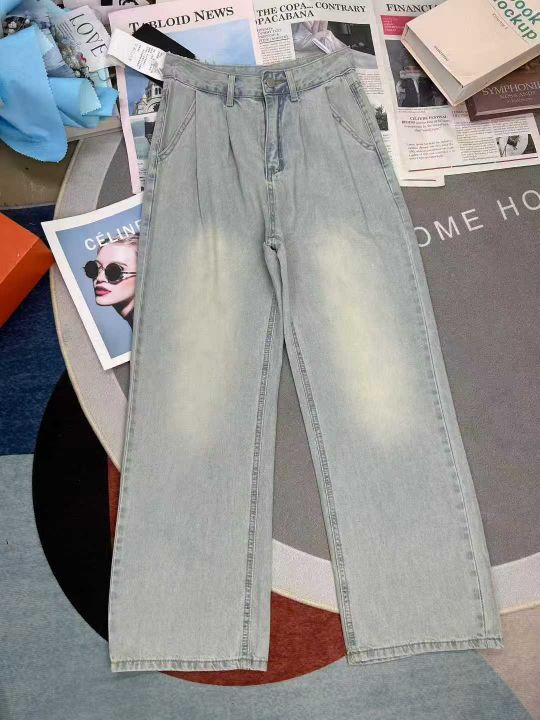 复古垂感阔腿薄款拖地阔腿牛仔裤,单款单色,数量700...