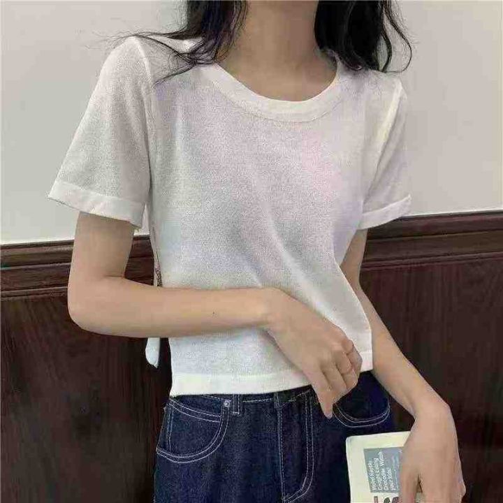 夏季新款净版简约冰丝曲珠针织短袖T桖,独立包装,均码面料柔软舒适丝滑有...