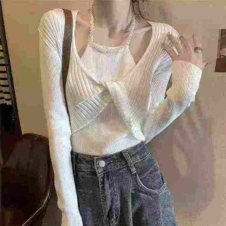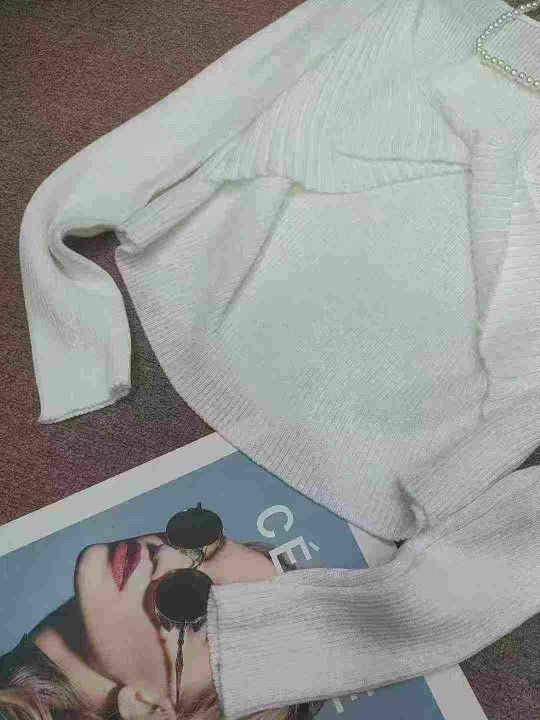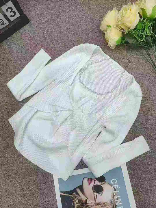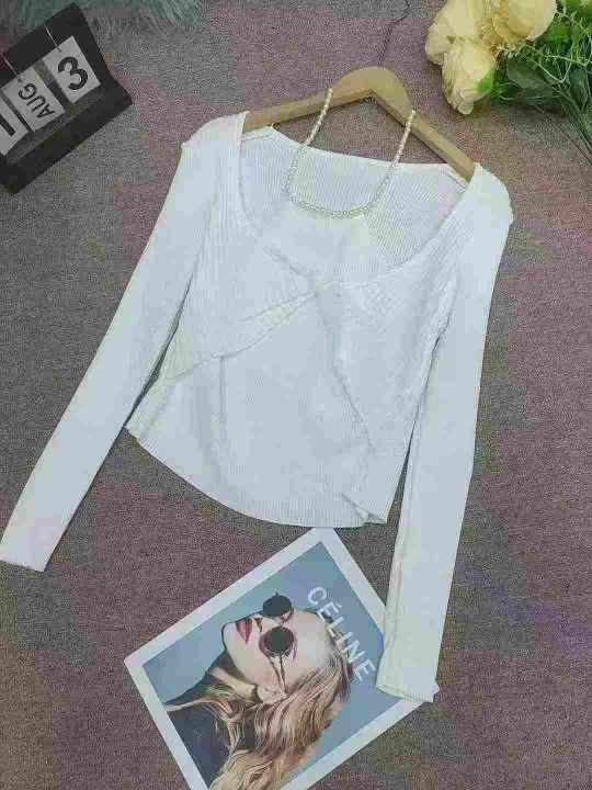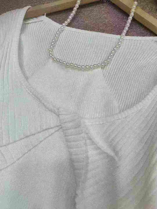 设计感珍珠挂脖链条长袖针织衫女春秋辣妹扭结短款修身上衣打底衫,独立包装,均码,140件,清8.5