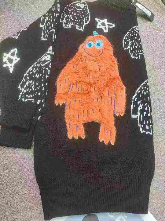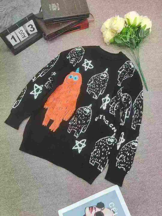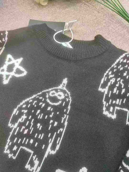 韩国东大门芝麻街套头针织毛衣卡通图案洋气宽松显瘦大版毛衣,独立包装,均码,115件,清8.8
