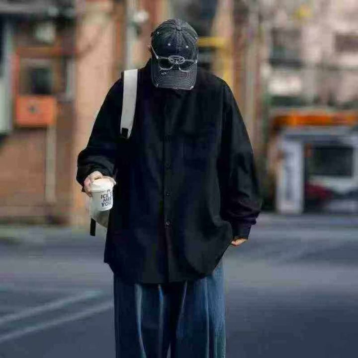 新款痞帅高级感长袖衬衫男春秋款设计感小众纯色百搭衬...