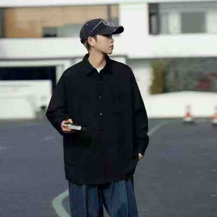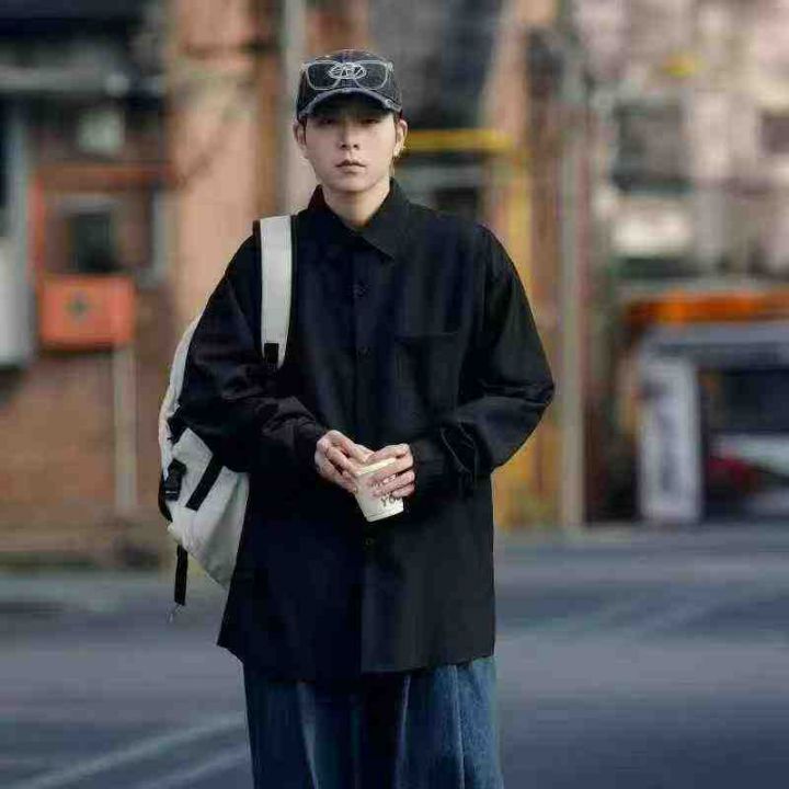 新款痞帅高级感长袖衬衫男春秋款设计感小众纯色百搭衬...