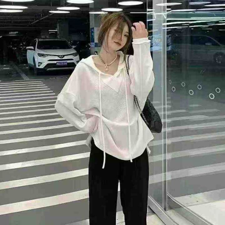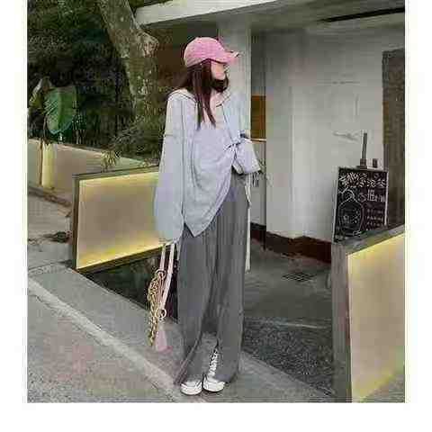 大码慵懒风连帽卫衣女早秋新款叠穿上衣外套ins小众显瘦长袖,数量296件,码数SMLXL,独立包装,全清4.8元