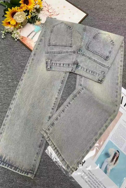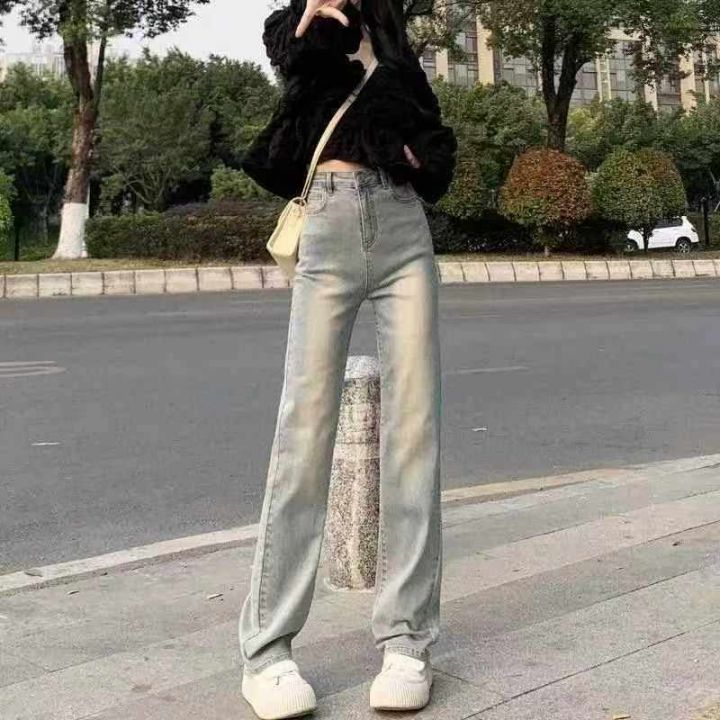 秋季新品洗水棉网红复古窄版直筒阔腿牛仔长裤,独立包...