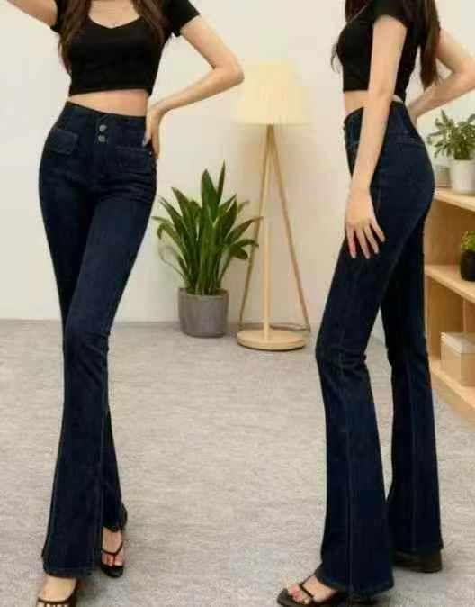 秋季新品高弹力洗水棉网红爆款牛仔开叉微喇叭牛仔裤,...