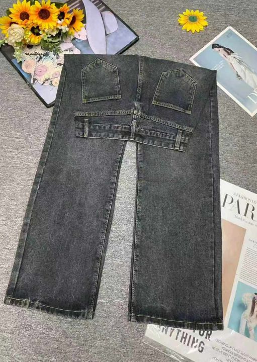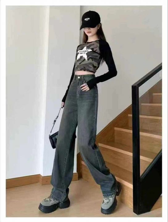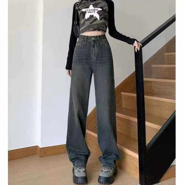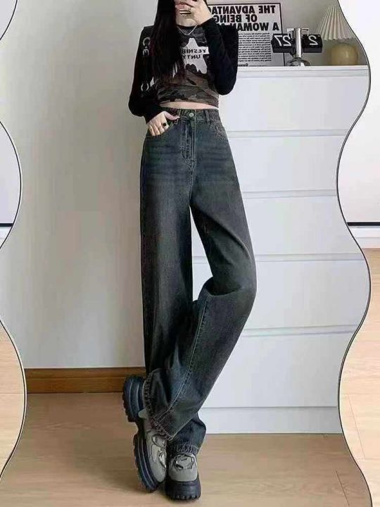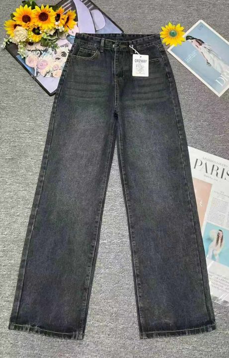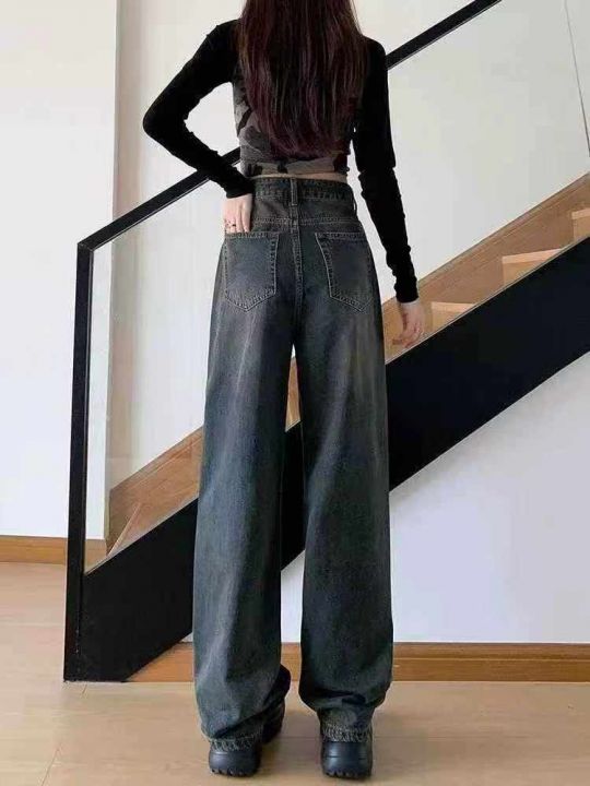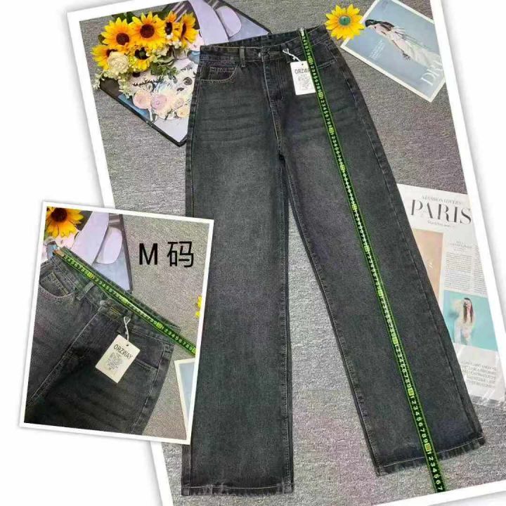 秋季新品高品质网红复古蓝洗水棉爆款牛仔直筒阔腿裤,...