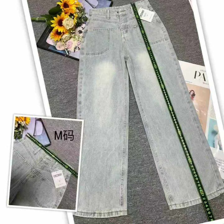 秋冬新款洗水棉网红复古浅色直筒阔腿牛仔裤,独立包装...