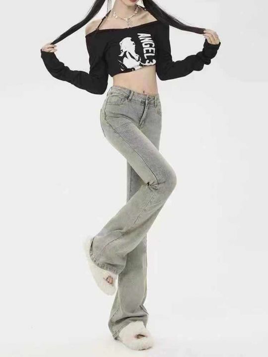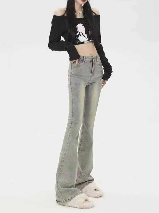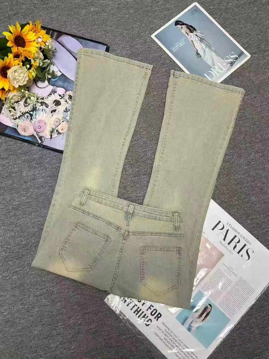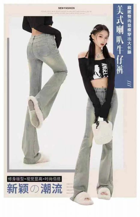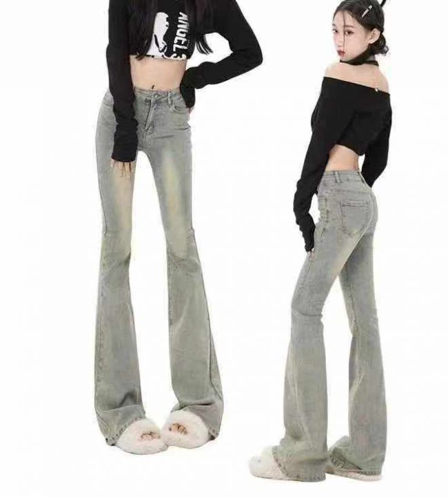 秋冬新款高品质网红爆款高弹力复古喇叭牛仔裤,独立包...