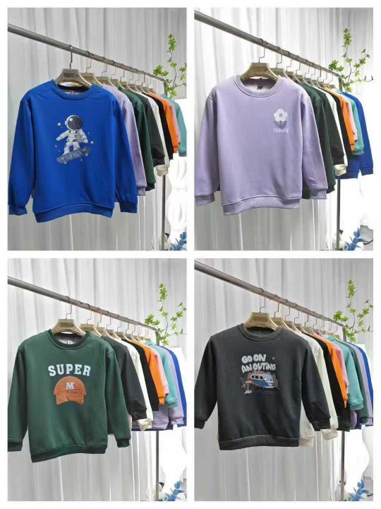 面料厚实,全部后领包边,基本加绒,基本都是婴儿绒,纯棉面料,全部独立包装,面料厚实,秋冬款,数量420件左右,分货➕有少许连帽,小整杂图案,多色,110-150码段