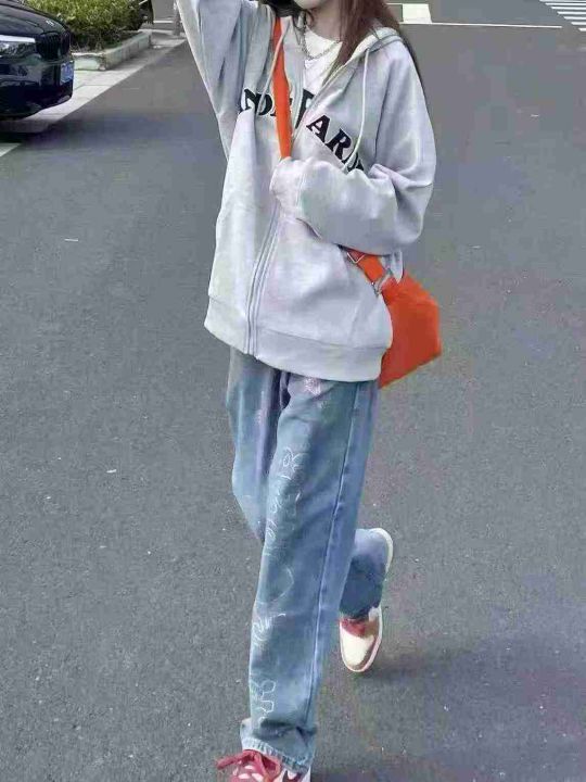 美式复古工装直筒牛仔裤女秋季宽松高腰显瘦水洗阔腿裤子拖地裤,独立包装带...