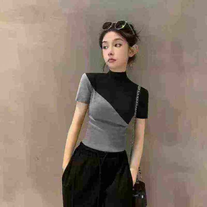 全清4.8元天猫在售款188件左右高品质夏季半高领拼色螺纹短袖T恤,单款单色...