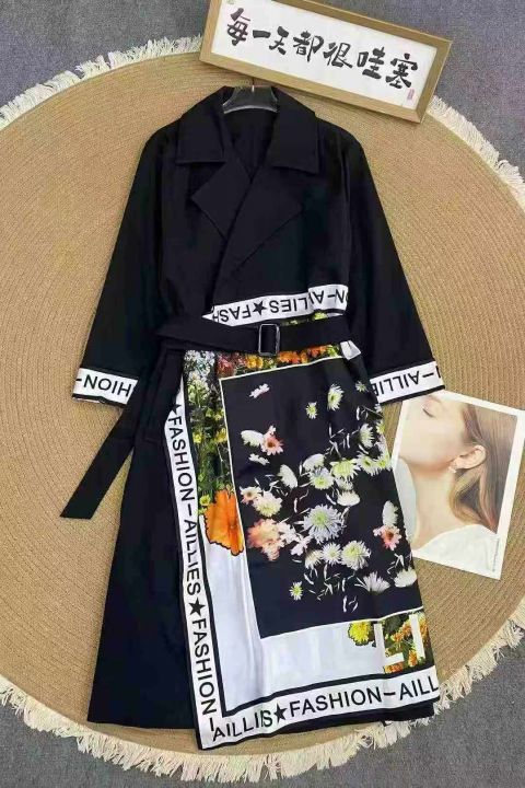 拼接印花风衣外套178件45,拼接设计,下摆开叉,有口...