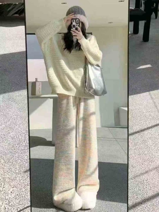 秋冬新款网红爆款韩系彩虹泡泡直筒阔腿糯米毛线裤,独立包装,面料软糯厚实...