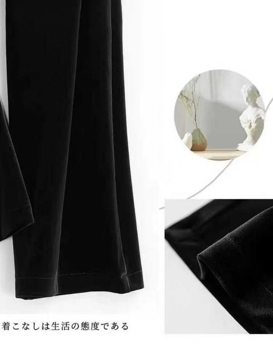 12.8清200条高端金丝绒阔腿裤女春秋新款高腰垂感大码休闲裤小个子窄版直筒裤 ,码数L-4XL 独立包装