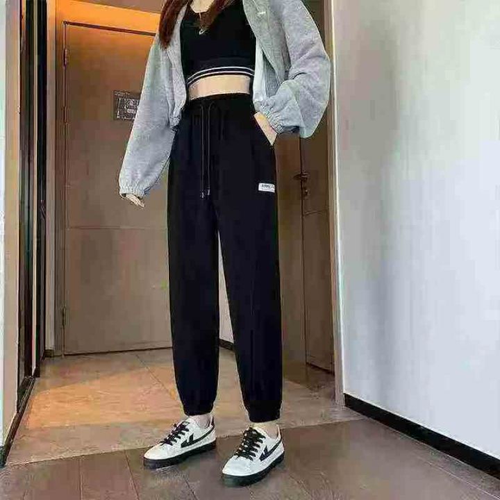 美式运动卫裤宽松束脚裤高腰休闲阔腿裤运动裤女宽松束脚休闲裤春秋卫裤,309条,码数S-2XL,(1-5码)小整带杂,独立包装货品干净(货号5025#29)