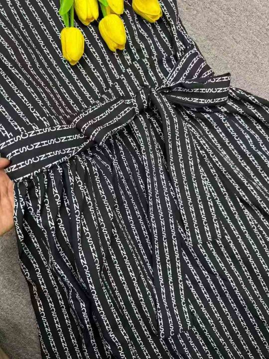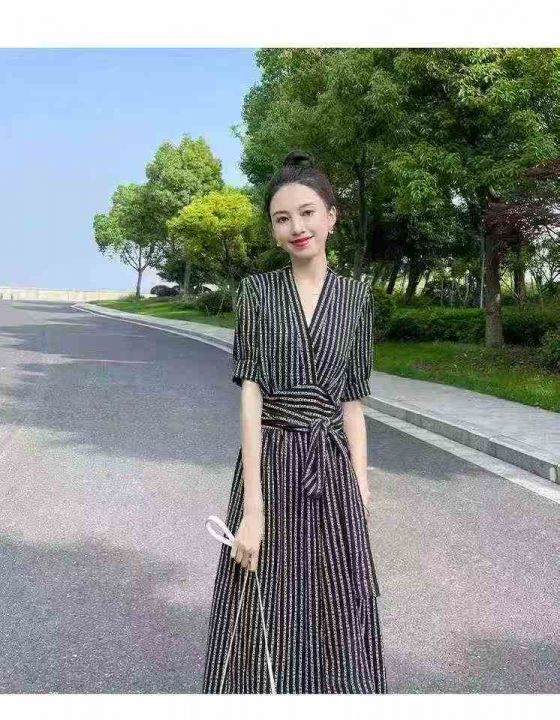 复古法式印花v领显瘦短袖开叉绑带气质长连衣裙,独立包装,码数1-4码,数量382条,1码裙长118厘米,分货加1,(货号0913#44)