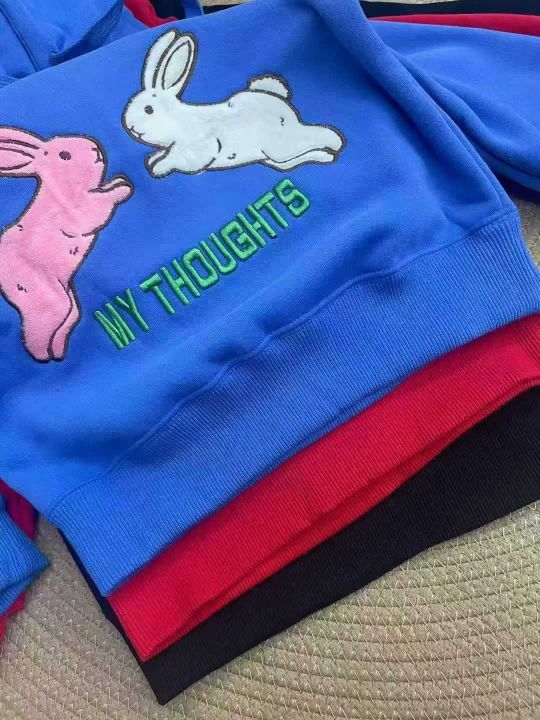 1869件高品质兔子刺绣连帽加绒儿童卫衣。双层连帽设计...