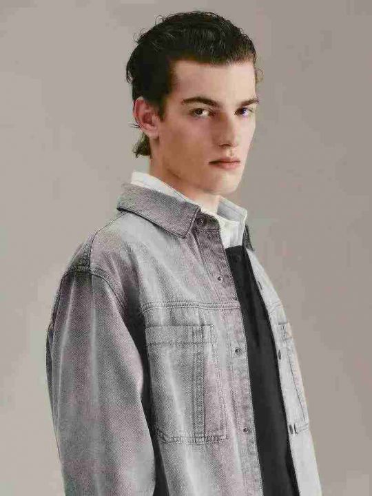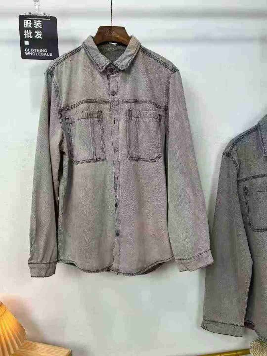 秋季新款男时尚复古休闲洗水棉双口袋牛仔衬衫,单款两...