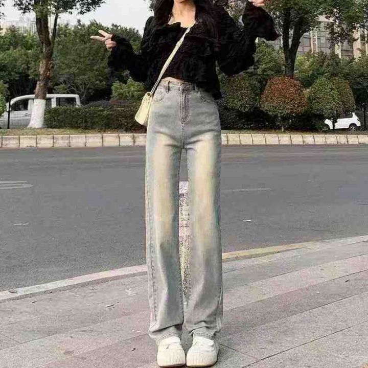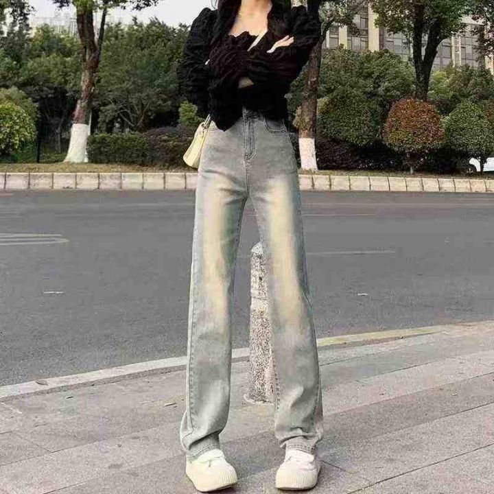 秋季新品洗水棉网红复古窄版直筒阔腿牛仔长裤,独立包...