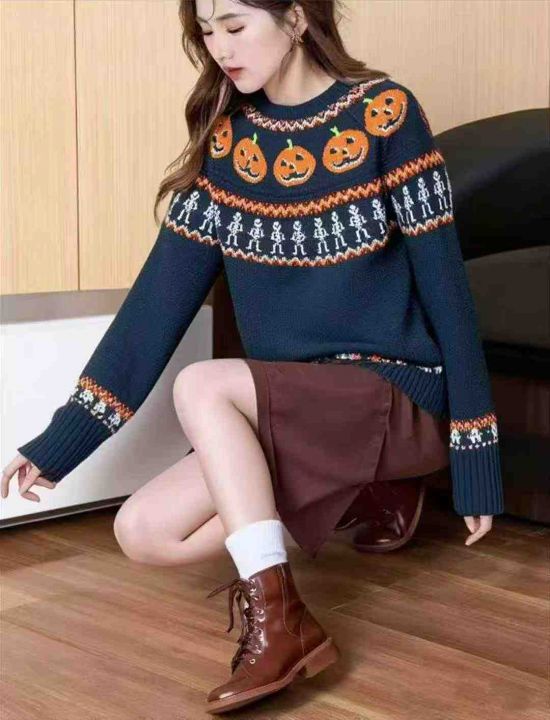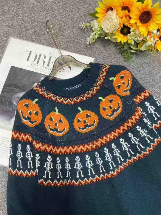 秋冬新款宽松慵懒风大版提花圆领北极绒套头毛衣,独立...