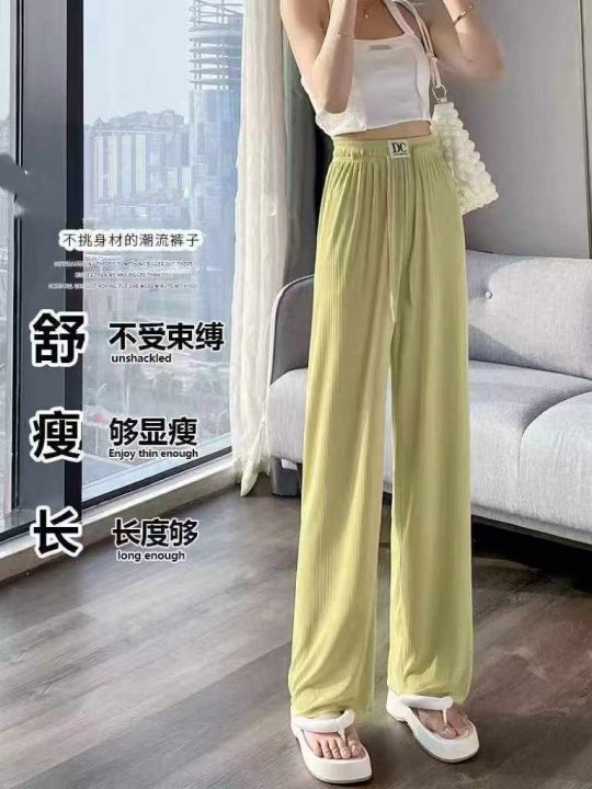 518件高腰垂感系绳宽松直筒冰丝阔腿裤,面料柔顺有质...