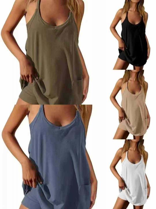 欧美夏季女士吊带上衣连体短裤连体衣休闲套装,码数S ...