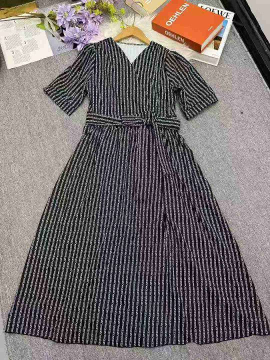 复古法式印花v领显瘦短袖开叉绑带气质长连衣裙,独立包装,码数1-4码,数量382条,1码裙长118厘米,分货加1,(货号0913#44)