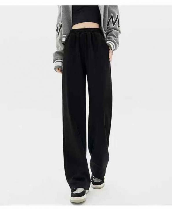 秋冬黑色运动加绒直筒休闲裤女,单款单色,面料厚实有质感,有独立包装,数...