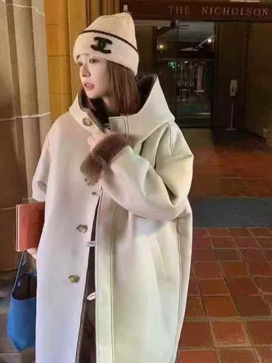 2025年新款连帽长款鹿皮绒皮毛一体内里保暖大衣毛茸茸外套加厚,尺码很好,...