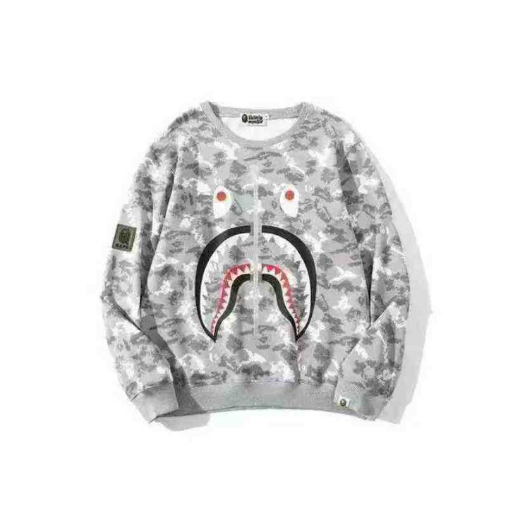 日系潮牌鲨鱼圆领卫衣2024款春秋季宽松百搭套头上衣服...