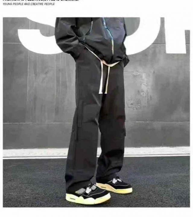 美式冲锋裤男款时尚防风裤子直筒侧拉登山工装裤