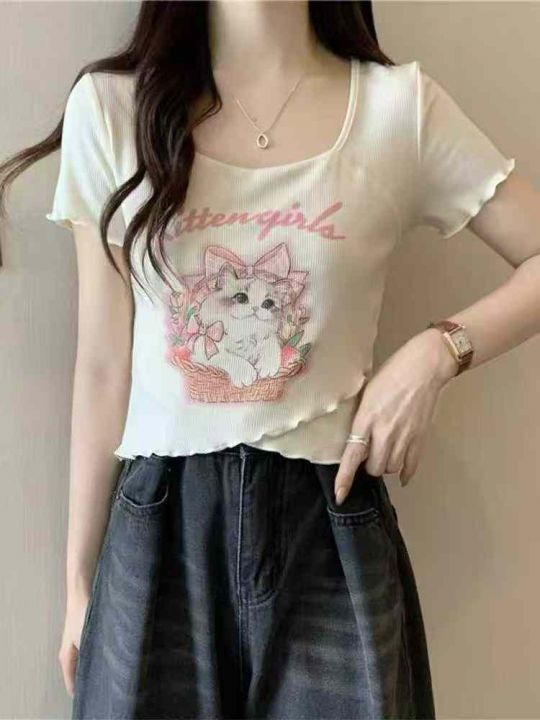 [月亮]:6.9清1900件[月亮]:不规则猫咪印花辣妹短袖T恤[月亮]:1-4(高弹...