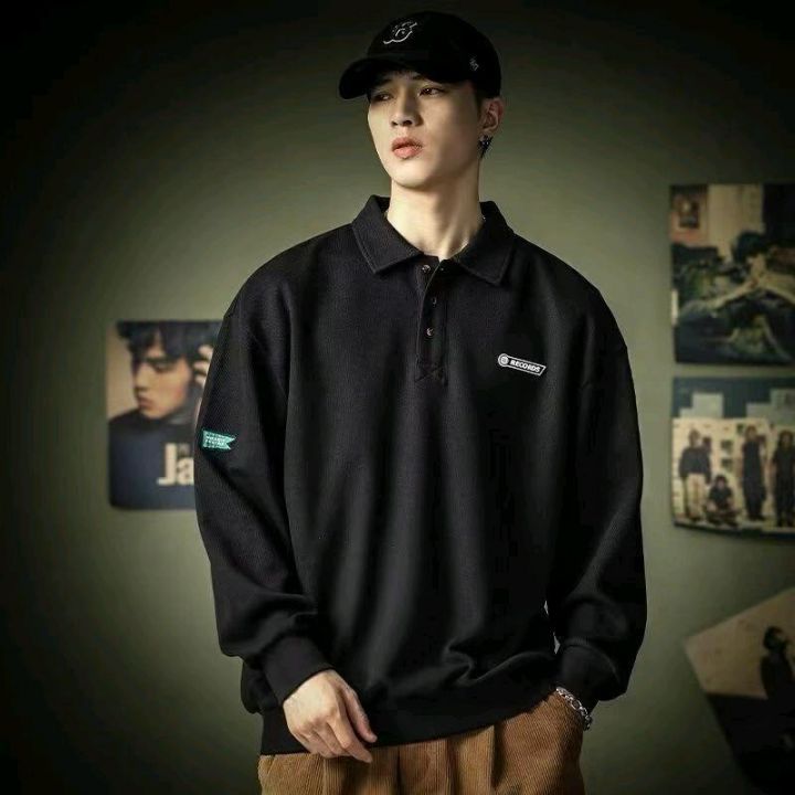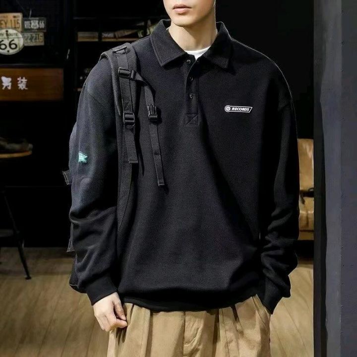 美式高街polo衫男士加绒卫衣长袖新款翻领上衣,数量270件,码数m-3xl,独立包装,后领包边,全清8.8元